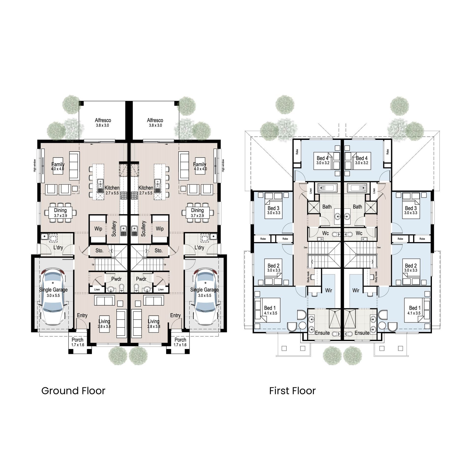 Terrace 47 offers a range of double storey duplex designs that may be (subject to local rules) subdivided into two homes. With no compromise on quality and features, these individual family homes provide a choice for the owner occupier or investor alike. Whether you are an investor looking at maximising rental returns, a growing family that needs a little extra space next door or an owner occupier who lives in one and leases the other, duplex living offers choice and flexibility.